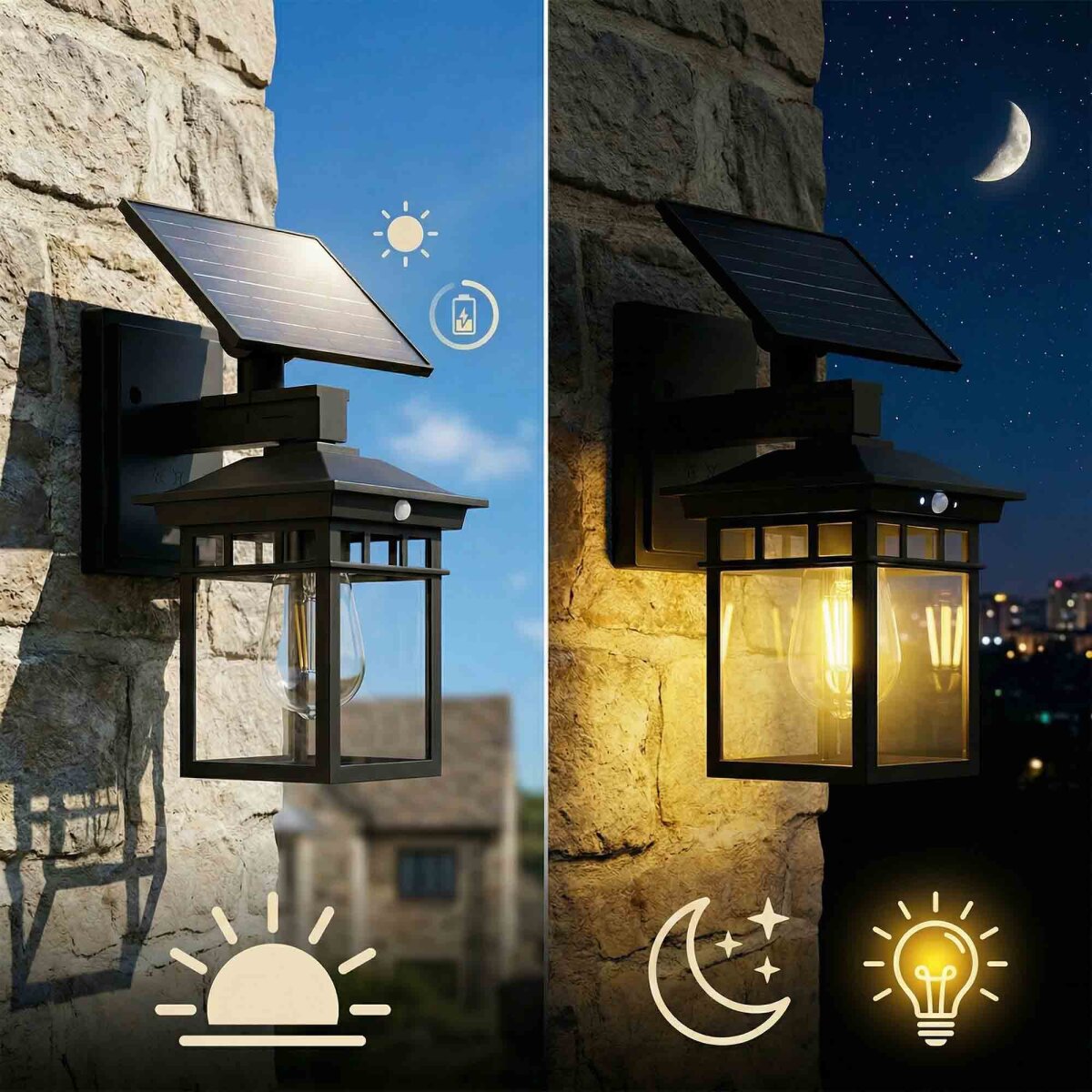 Kurulum: Kablo bağlantısı veya harici güç kaynağı gerektirmez. Güneş ışığını doğrudan alan duvar yüzeylerine kolayca monte edilebilir.