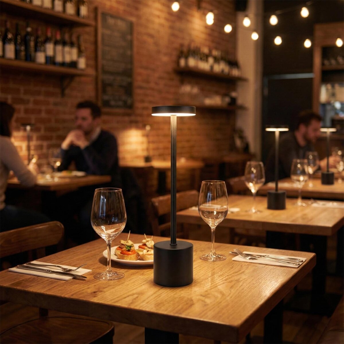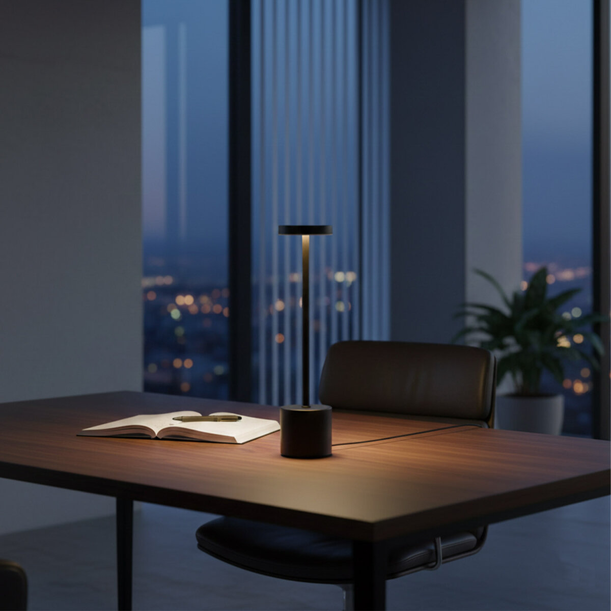 Evinizin her köşesinde, kafe ve restoranlarda hem dekorasyon hem aydınlatma amaçlı kullanılabilen, modern tasarım led ışıklı metal masa lambası.