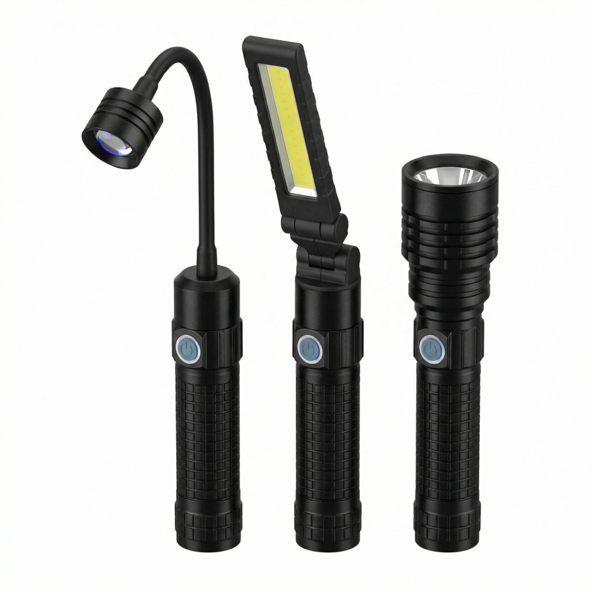 1 x Ana Gövde, 1 x T6 Sabit Başlık, 1 x 360° Oynar Başlık, 1 x 180° Katlanır COB Başlık, 1 x 18650 Pil, 1 x AAA Pil Yuvası, 1 x Type-C USB Kablo.