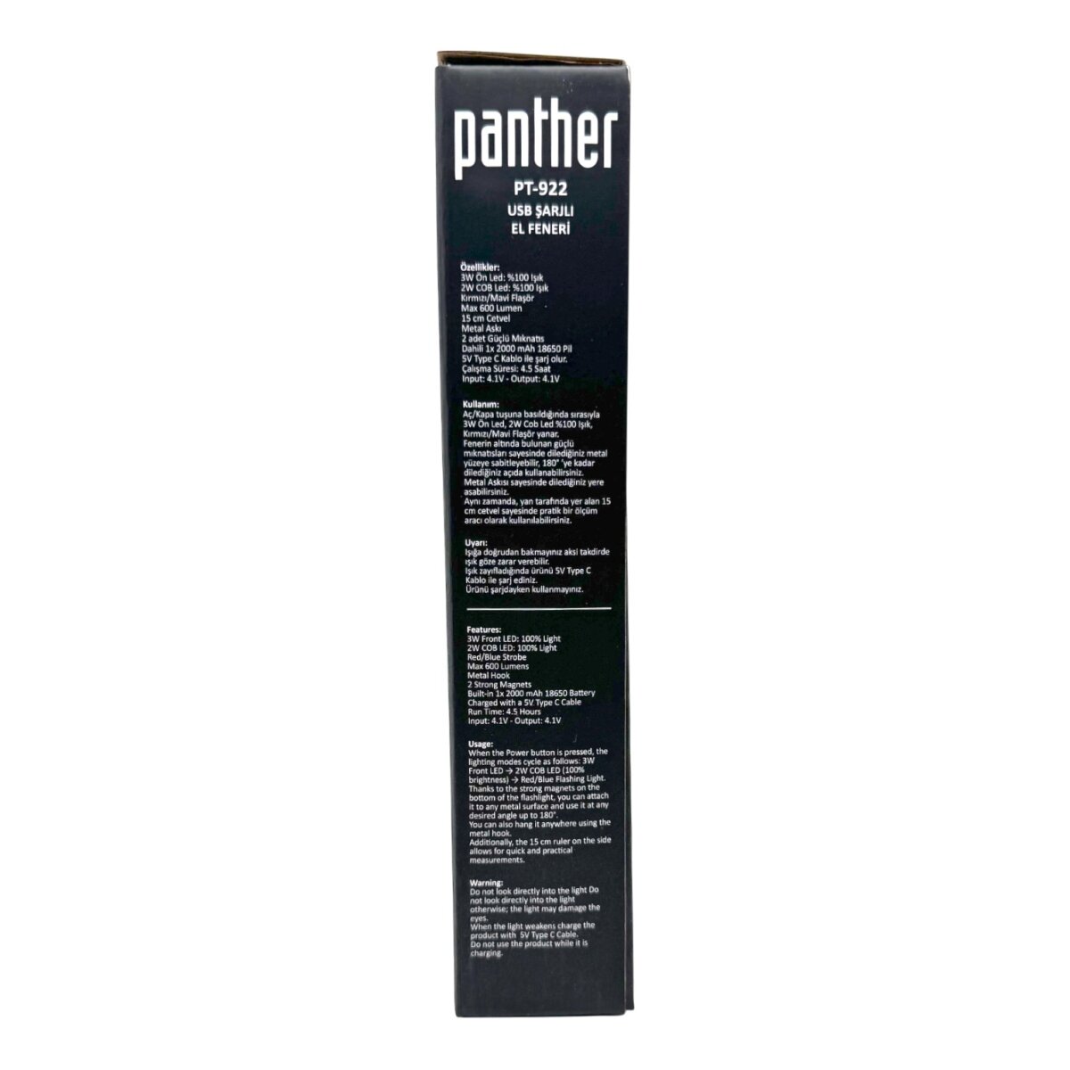 PANTHER PT-922 USB ŞARJLI EL FENERİ