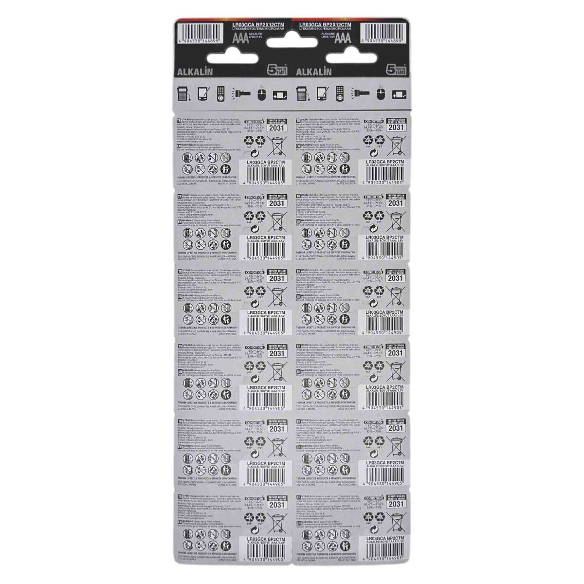 TOSHIBA LR03 24LÜ KARTELA ALK. İNCE PİL